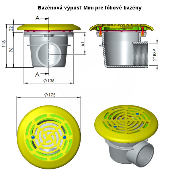 Bazénová dnová výpusť Mini pre fóliové bazény Bazénová výpusť vyrobená z bieleho ABS plastu odolného proti UV žiareniu. Technické parametre výpuste Mini pre fóliové bazény:
