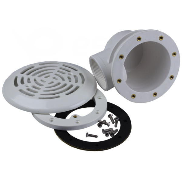 Bazénová výpusť vyrobená z bieleho ABS plastu odolného proti UV žiareniu.
