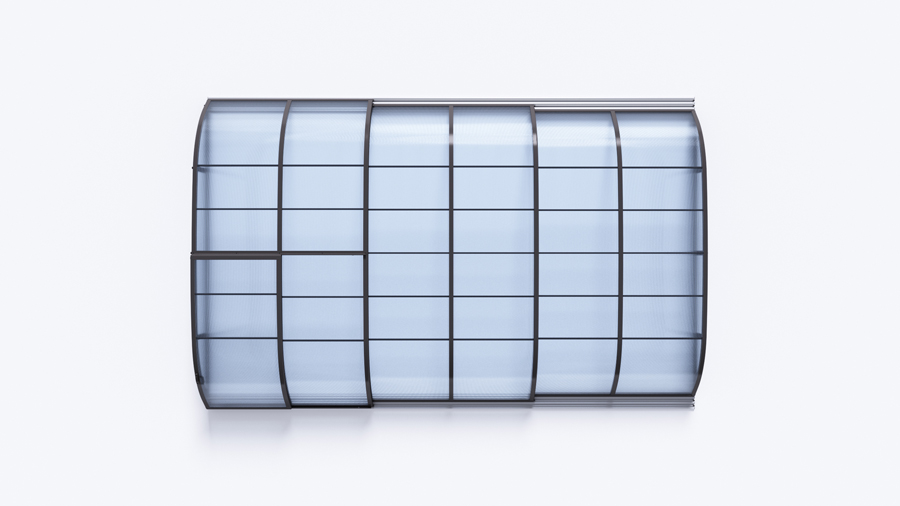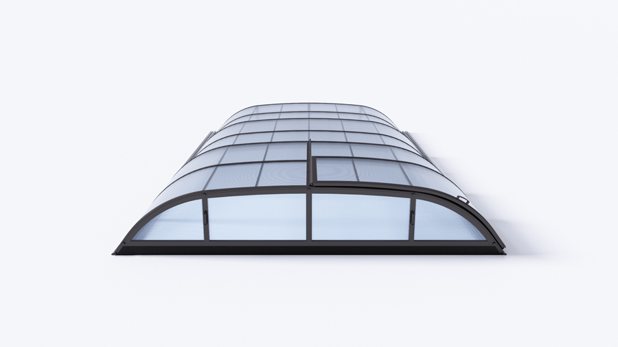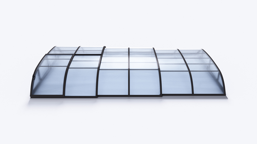 Kryt modulu je vyrobený z 8 mm hrubého dutého polykarbonátu. Tento materiál je nenáročný na údržbu a vďaka svojim tepelnoizolačným vlastnostiam pomáha aj pri ohrievaní vody v bazéne. Samozrejmou vlastnosťou polykarbonátovej dutiny je ochrana proti UV žiareniu.