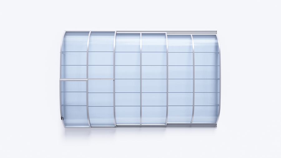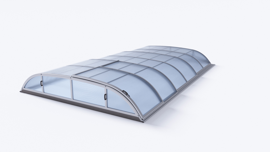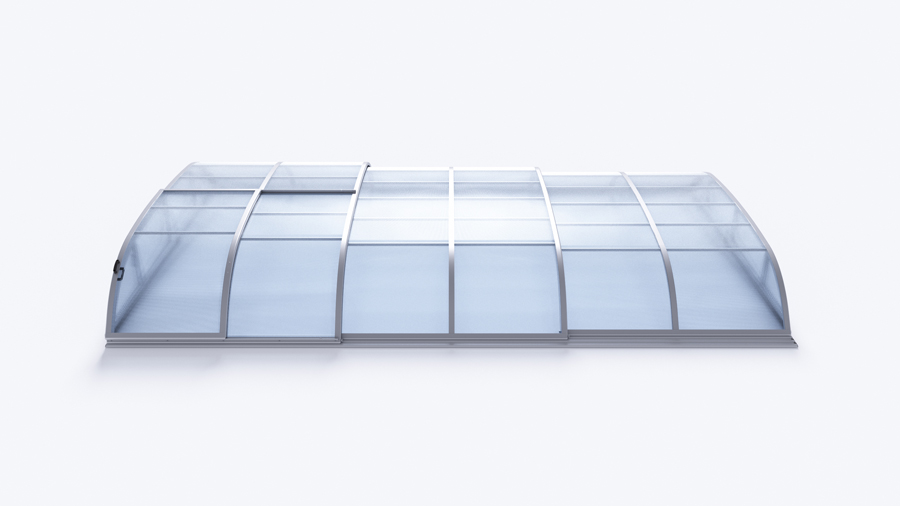 Kryt modulu je vyrobený z 8 mm hrubého dutého polykarbonátu. Tento materiál je nenáročný na údržbu a vďaka svojim tepelnoizolačným vlastnostiam pomáha aj pri ohrievaní vody v bazéne. Samozrejmou vlastnosťou polykarbonátovej dutiny je ochrana proti UV žiareniu.