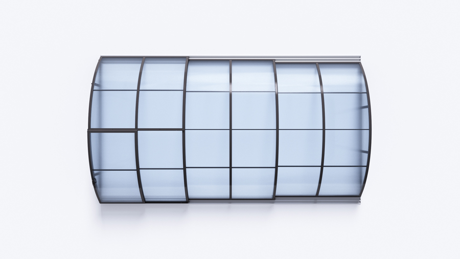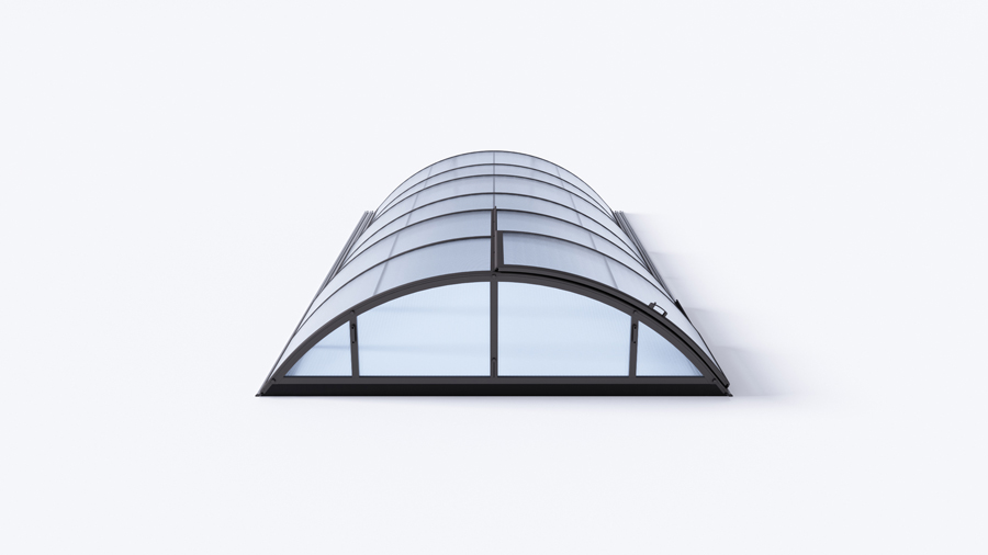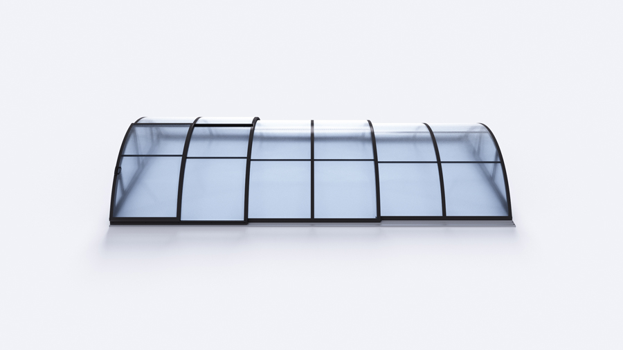 Kryt modulu je vyrobený z 8 mm hrubého dutého polykarbonátu. Tento materiál je nenáročný na údržbu a vďaka svojim tepelnoizolačným vlastnostiam pomáha aj pri ohrievaní vody v bazéne. Samozrejmou vlastnosťou polykarbonátovej dutiny je ochrana proti UV žiareniu.