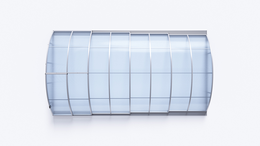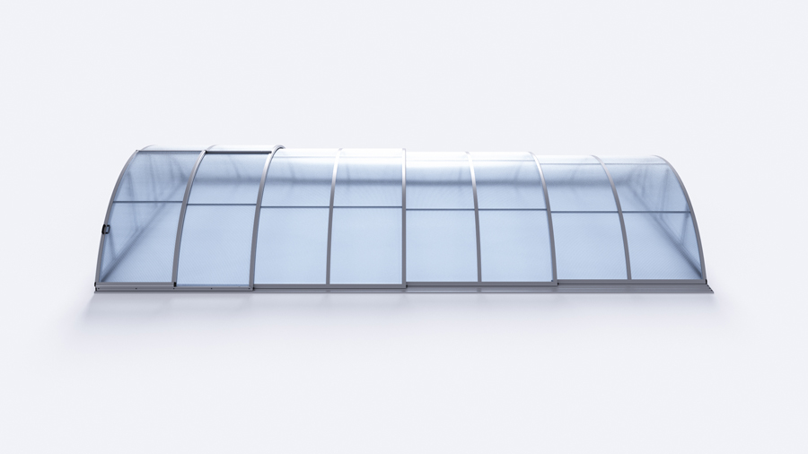 Kryt modulu je vyrobený z 8 mm hrubého dutého polykarbonátu. Tento materiál je nenáročný na údržbu a vďaka svojim tepelnoizolačným vlastnostiam pomáha aj pri ohrievaní vody v bazéne. Samozrejmou vlastnosťou polykarbonátovej dutiny je ochrana proti UV žiareniu.