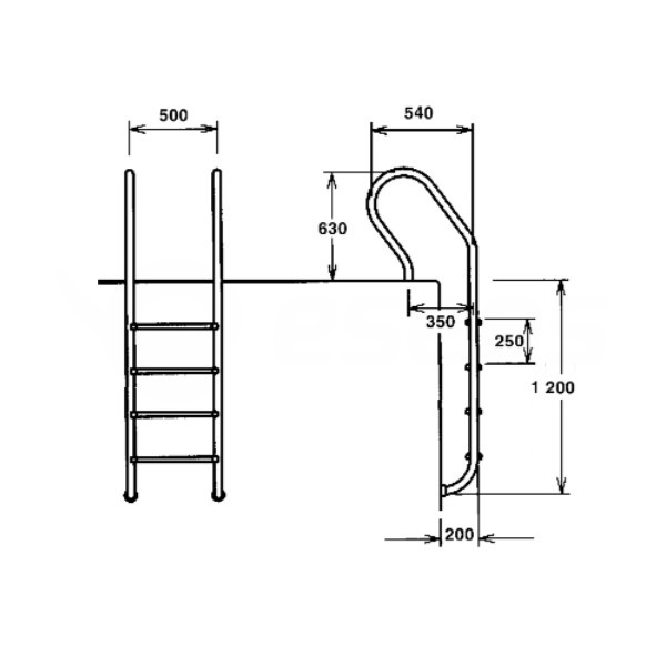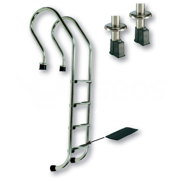Bazénový rebrík pre zapustené bazény. Rebríky sa osadzujú na okraj bazénu do zabetonovaných plastových púzdier (sú súčasťou dodávky). V prípade potreby je možné rebrík ľahko demontovať povolením dvoch šróbov. Madlá a stúpačky sú vyrobené z nerezovej oceli AISI-316.