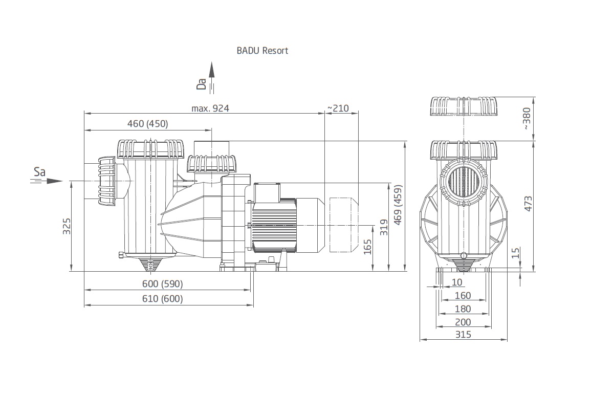 Samonasávacie čerpadlo BADU RESORT je vhodné pre verejné prevádzky ako je napríklad wellnes, alebo na vodné atrakcie. Je vyrobené z plastu, vystúženého sklenenými vláknami. Je vhodné pre sladkú aj slanú úpravu vody.