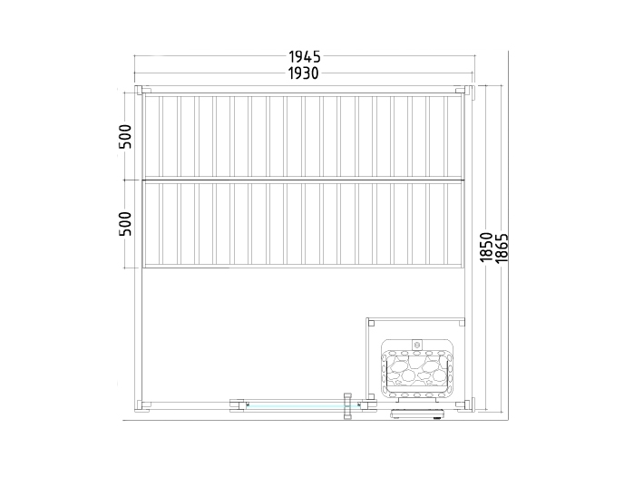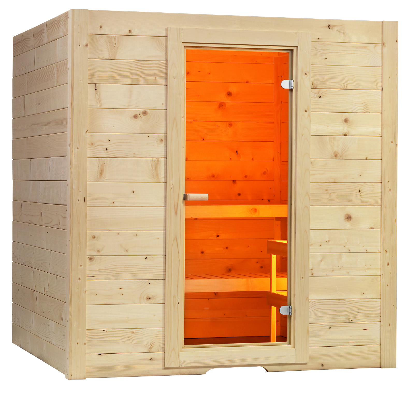 Saunová kabína Large, masív- severský smrek, 195 x 187 cm, saunová pec 8kW, riadenie, kamene + box.